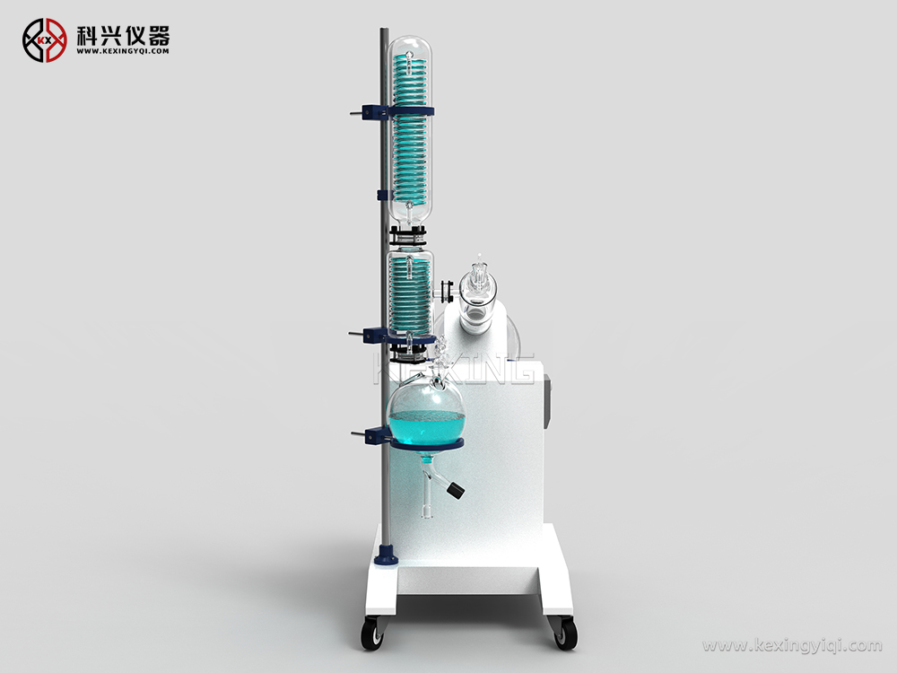 旋轉蒸發儀主要用于醫藥、化工和生物制藥等行業的食品等領域的中試,進行濃縮、結晶、干燥、分離及溶媒回收。有大容量、大口徑旋轉蒸發瓶,置于水浴中,邊旋轉邊加熱,使溶液高效擴散蒸發。產品可與循環水式多用真空泵、隔膜真空泵、低溫循環(真空)泵,循環冷卻器,恒溫循環器,低溫冷卻液循環泵等配套組成系統裝置。其原理為在真空條件下,恒溫加熱,使旋轉瓶恒速旋轉,物料在瓶壁形成大面積薄膜,高效蒸發。溶媒蒸氣經高效玻璃冷凝器冷卻,回收于收集瓶中,大大提高蒸發效率。特別適用對高溫容易分解變性的生物制品的濃縮提純。